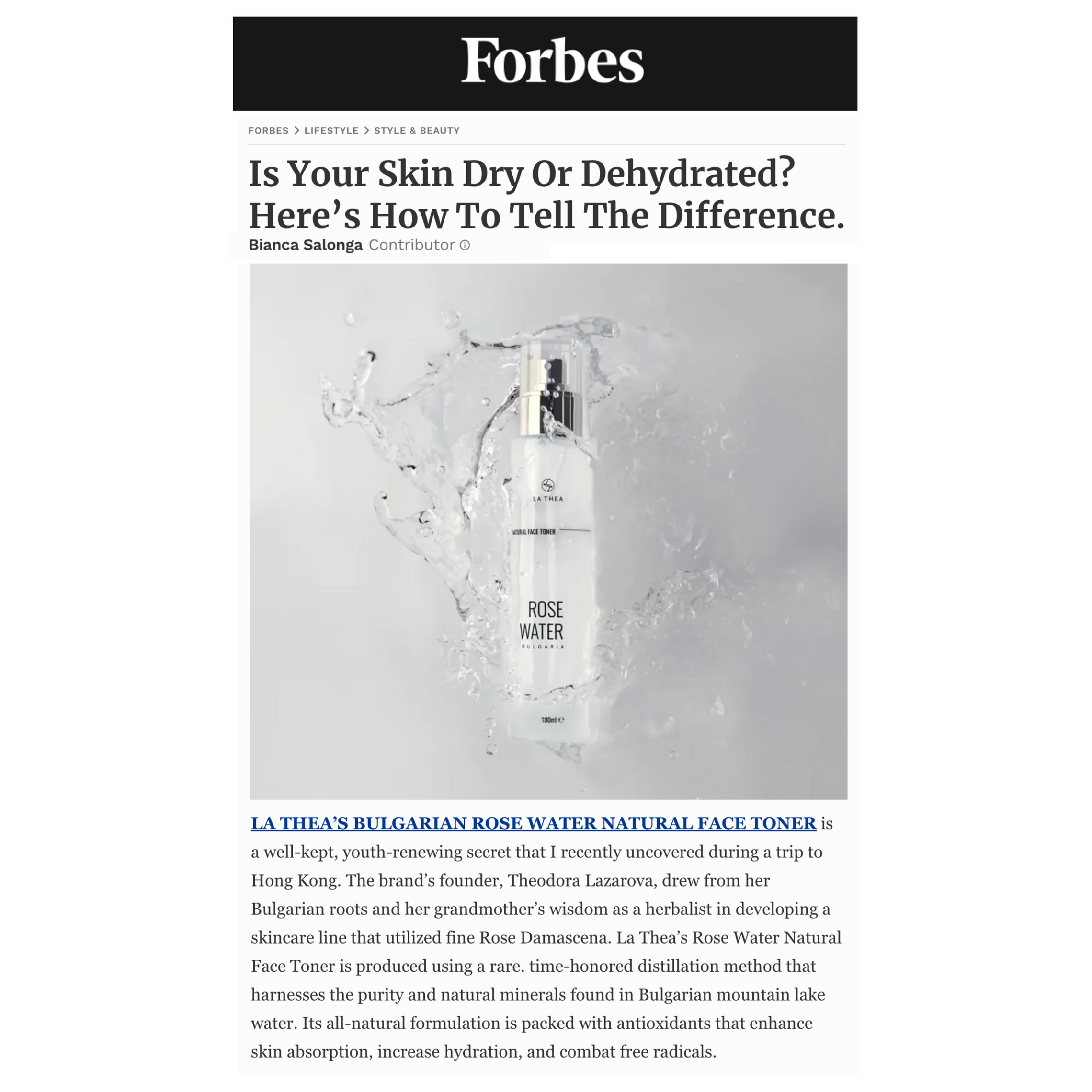 Each bottle of La Thea Face Toner consists of 100 roses, sustainably hand-picked from the lush fields of Bulgaria.
