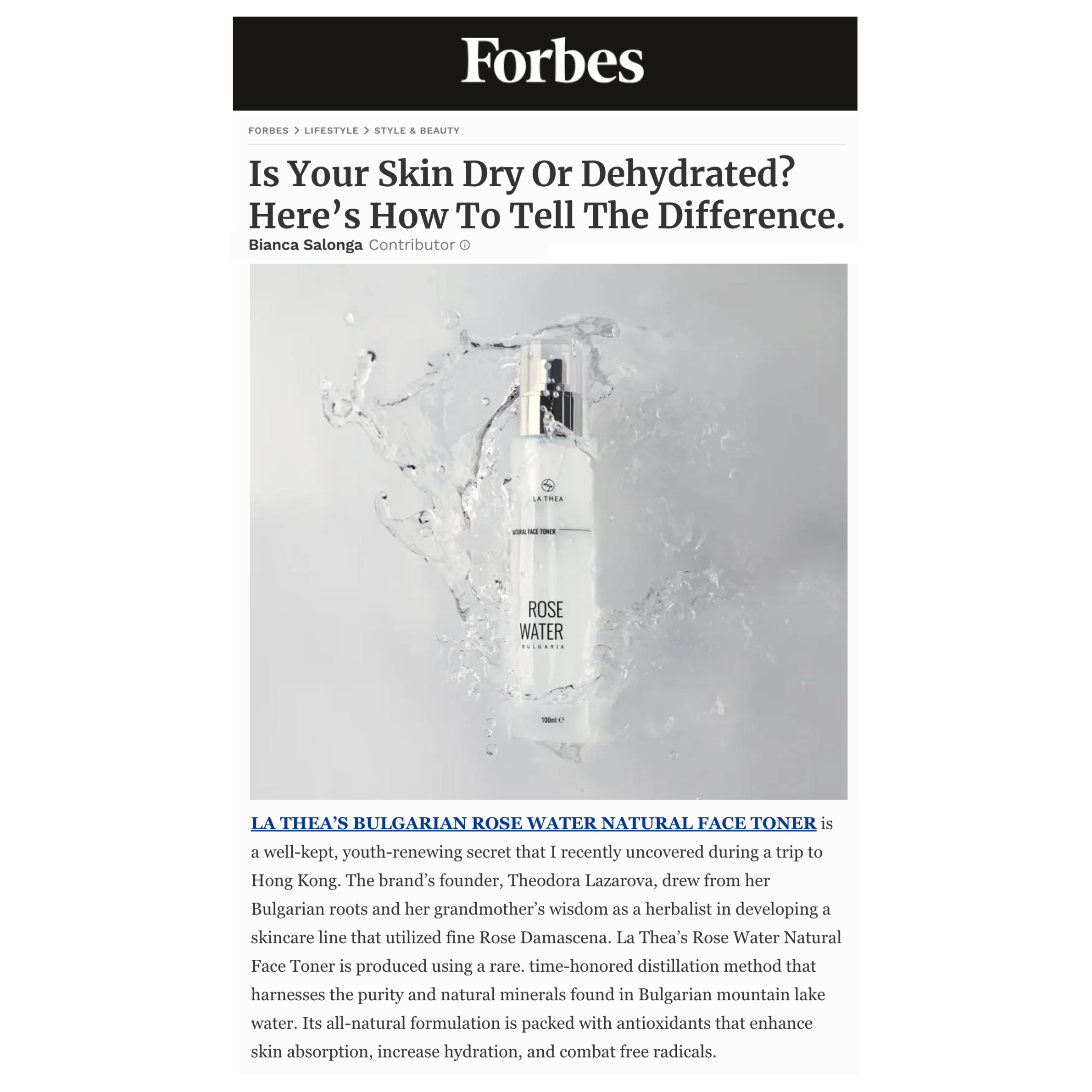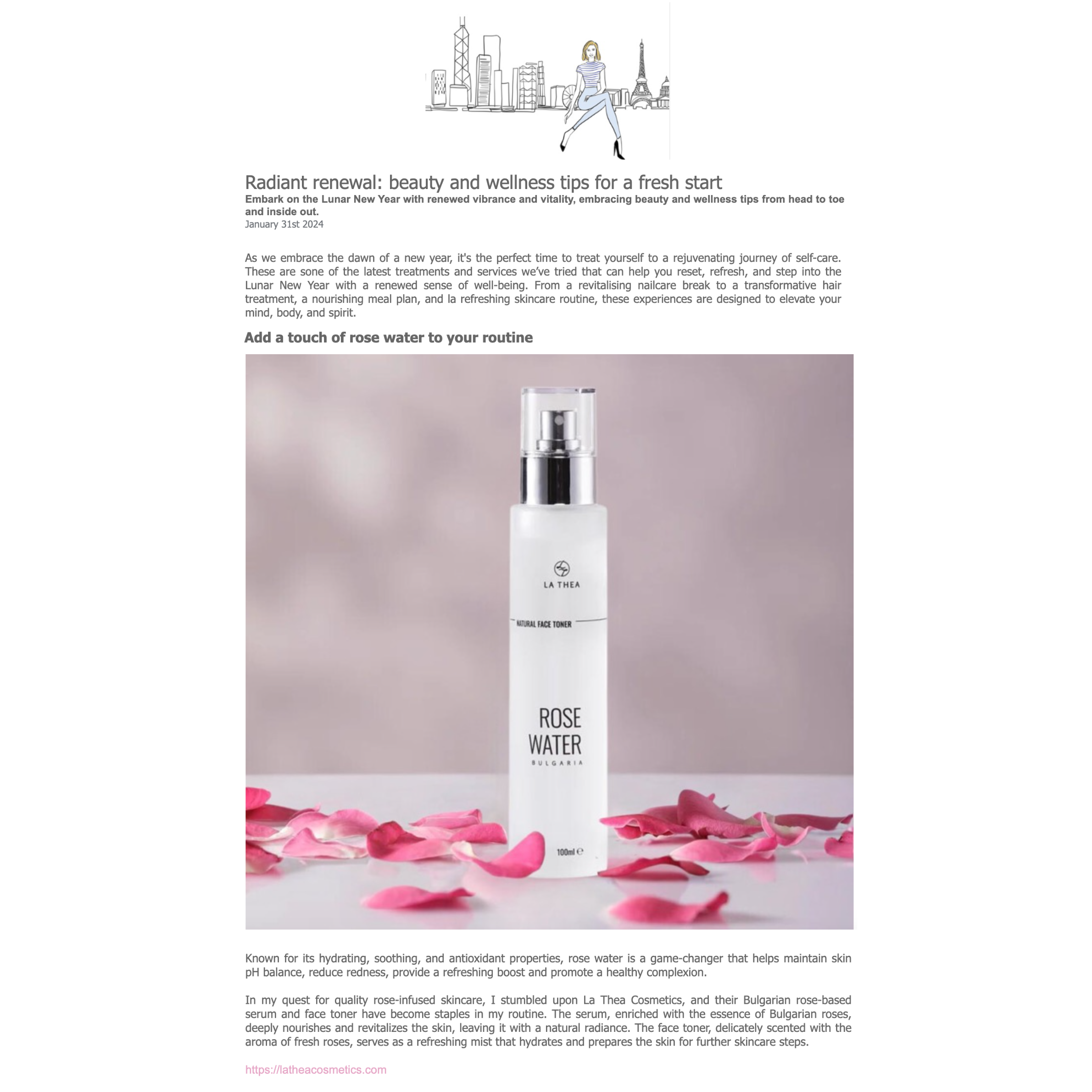 "I have always struggled with rosacea, sensitive skin and redness, and when I discovered La Thea it helped a lot! I love the rose water and use it ever since, whenever I have a rosacea flair up I just spray it all over my face and it has been perfect in calming my irritated skin! Recently I got my hand on the new La Thea product, the serum, which is a great combination with the rose water together! Thank you La Thea and thank you my friend Theodora!